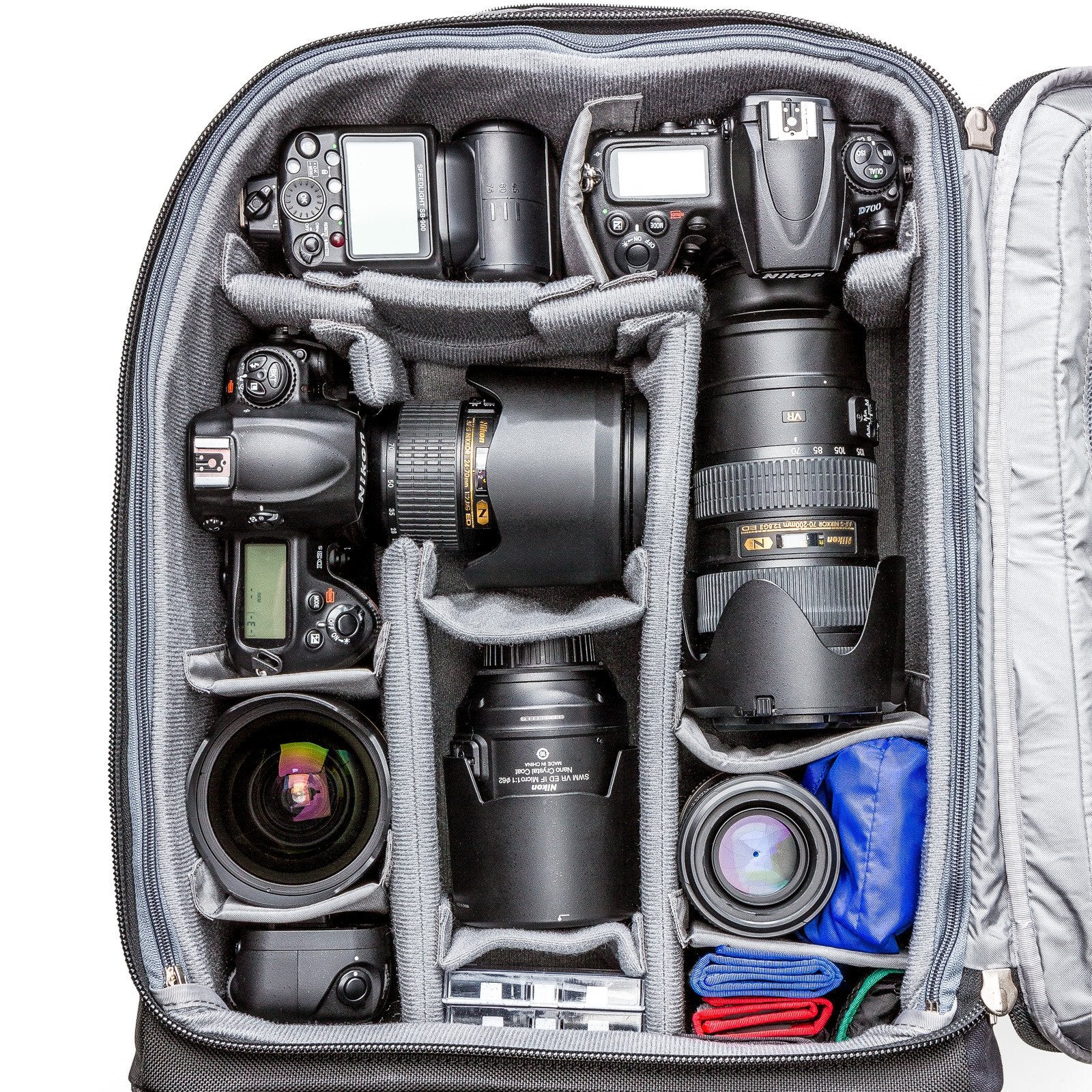 • Interior zippered pockets for batteries, CF cards, filters and accessories
